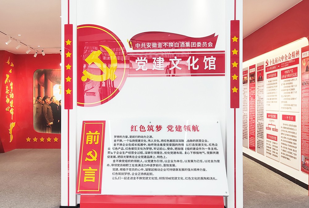 金不換黨建館的文化建設展示的內(nèi)容,突出了黨建引領,回顧了金不換企業(yè)黨委帶領金不換白酒集團不斷發(fā)展壯大的歷史。金不換企業(yè)發(fā)展史正契合了我國從改革開放到進入新時代的全過程。40多年的發(fā)展變化,她所展示的內(nèi)容和前進的節(jié)拍,正融進了我國改革開放的每一個階段。金不換邁出的步伐緊扣時代的節(jié)奏,顯得是那樣的鏗鏘有力。耐讀、耐品、耐回顧。這就是金不換黨建館的價值之所在。